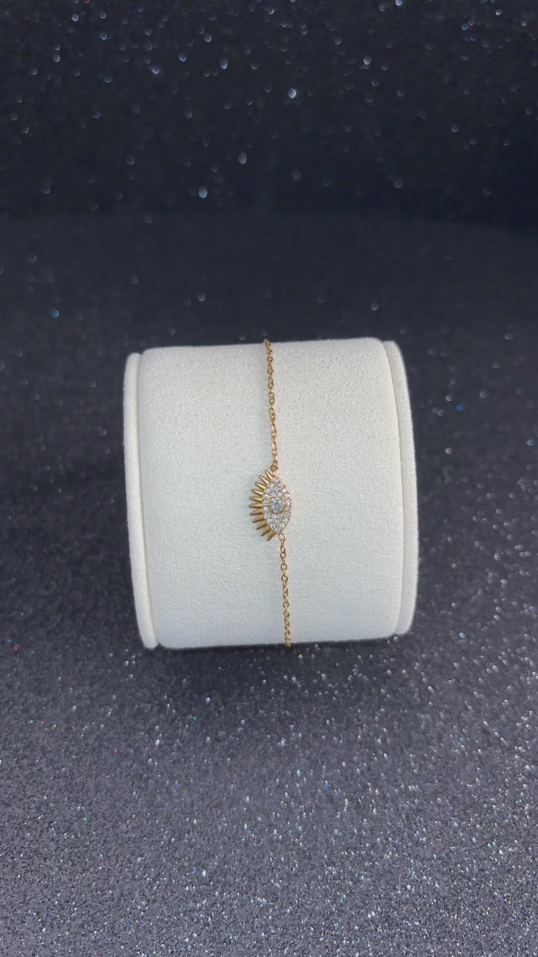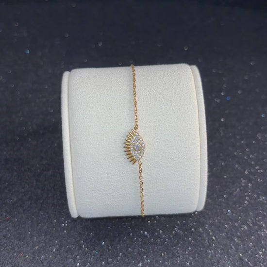 Pulsera dorada con elegante diseño de ojo, adornada con brillantes que aportan un toque de sofisticación y estilo, perfecta para complementar cualquier look con un detalle único y luminoso✨️.