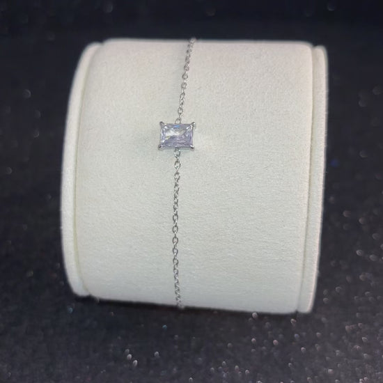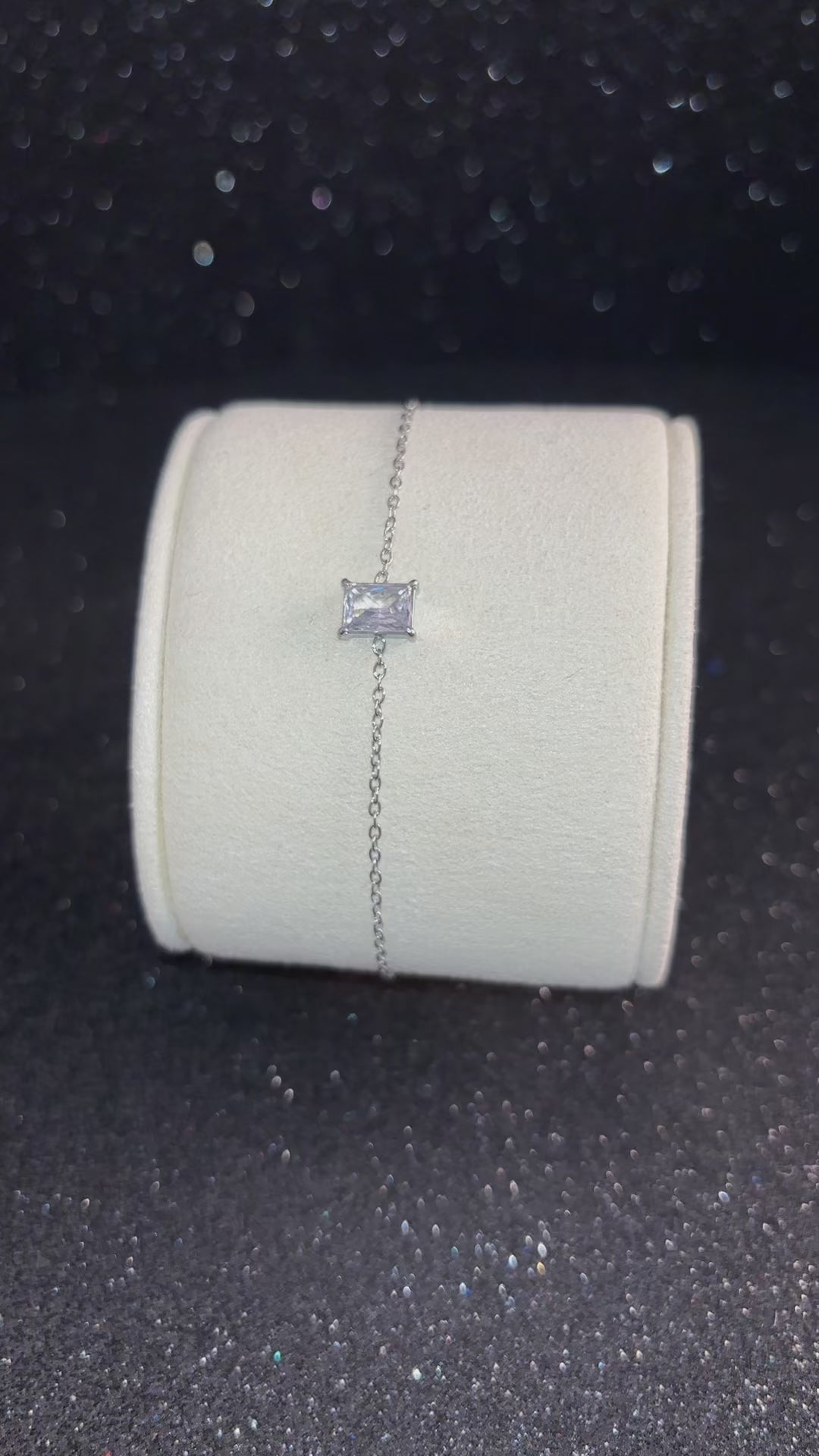 Una pulsera de elegancia serena. Su diseño minimalista en tono plateado realza una gema central de corte rectangular, símbolo de pureza y sofisticación. Perfecta para quienes buscan un brillo discreto pero inconfundible✨️.