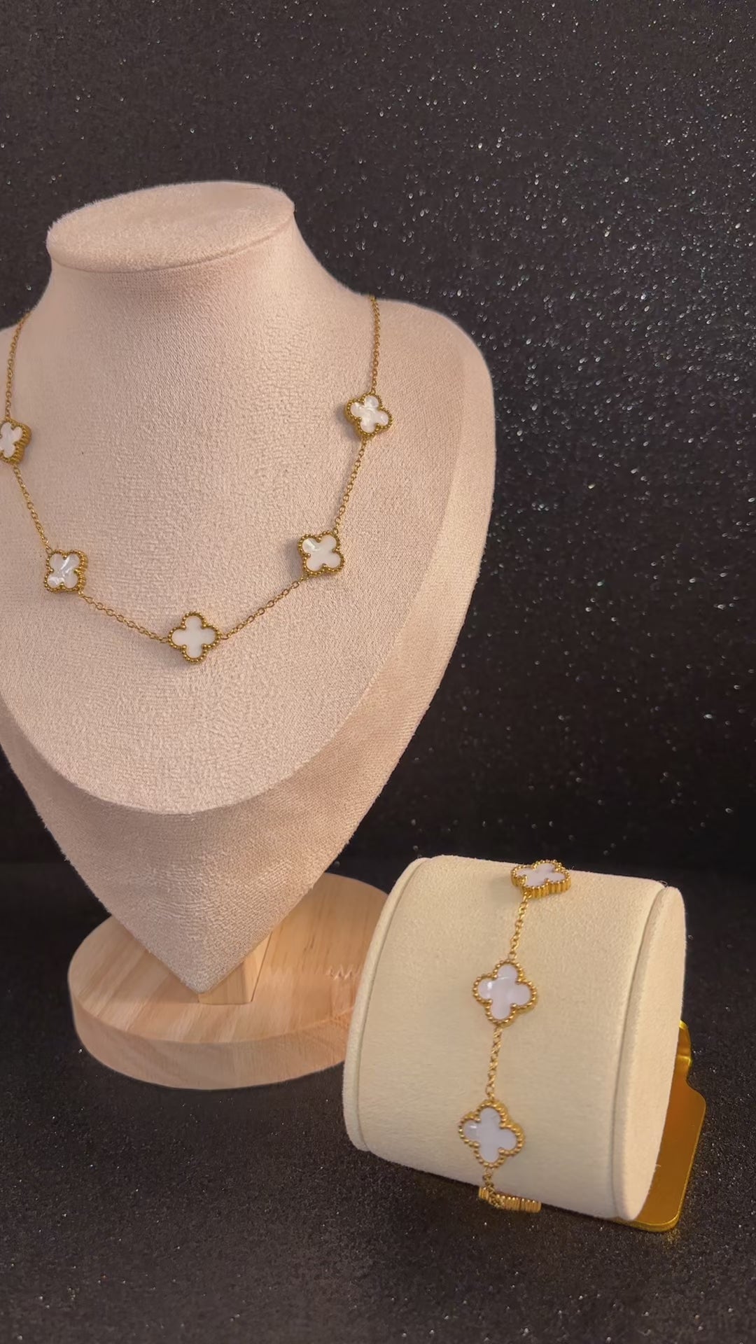 Refinada y luminosa, esta pulsera dorada con tréboles blancos es el toque perfecto de elegancia. Una joya sutil, sofisticada y atemporal que realza cada movimiento con distinción✨️.