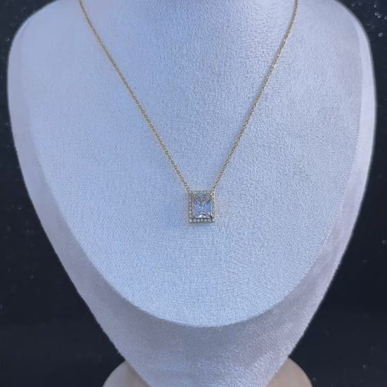 Collar de acero inoxidable con colgante brillante tipo cristal cuadrado