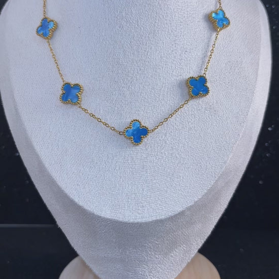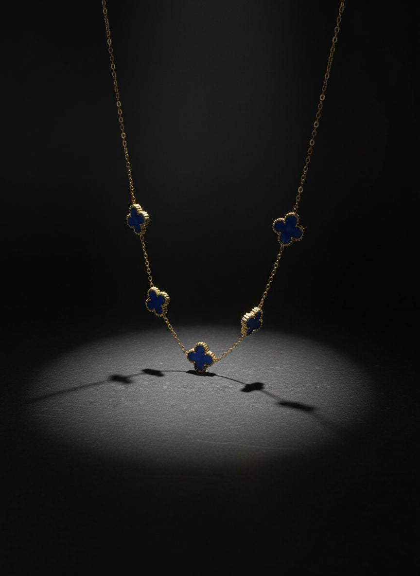 Hecho en acero inoxidable, con tréboles azules que aportan un toque de lujo y estilo.
