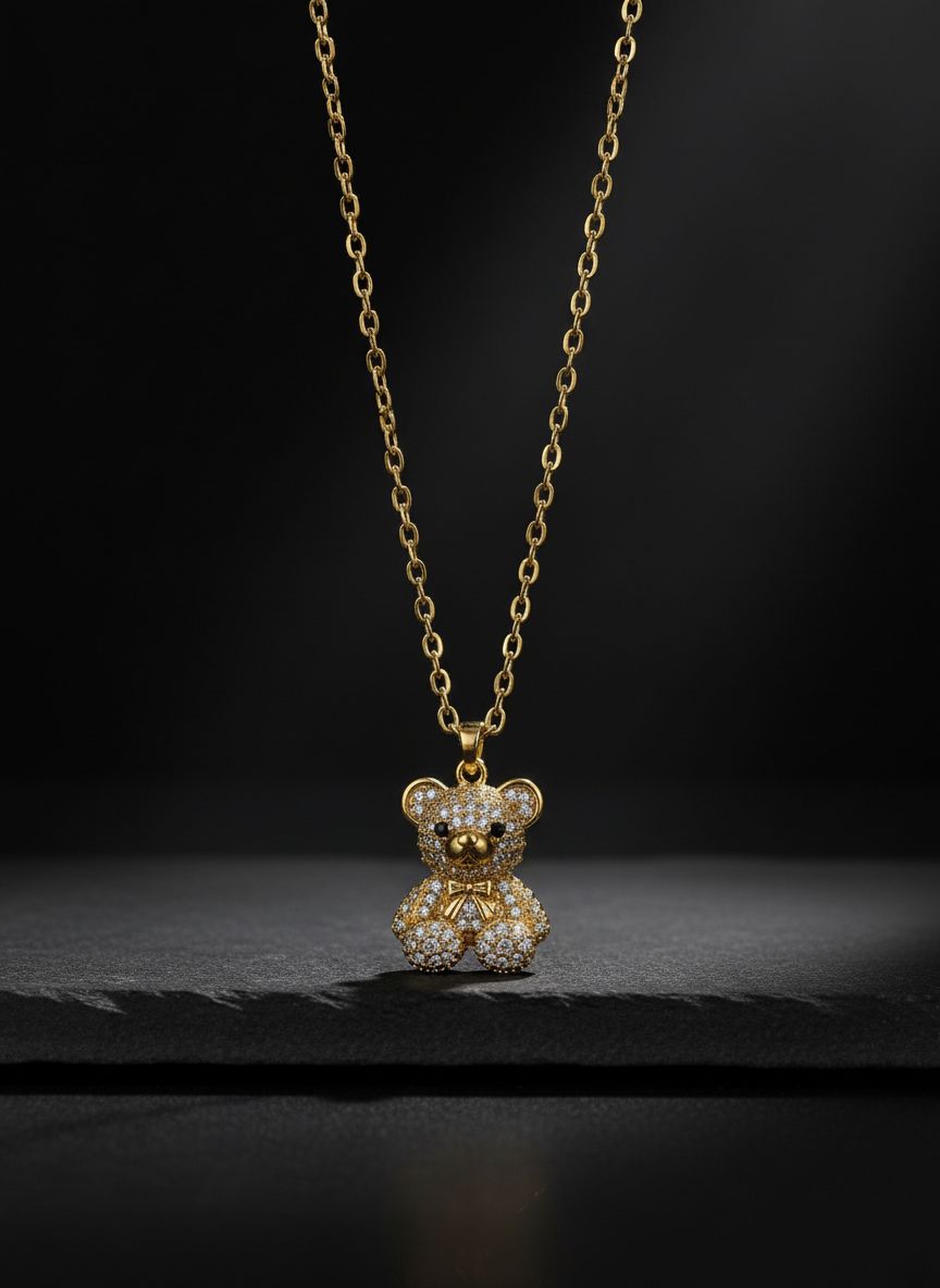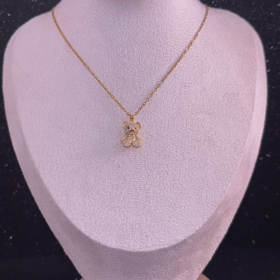 Collar de acero inoxidable con dije de osito brillante. Material resistente, hipoalergénico y perfecto para usar todos los días sin perder su brillo.