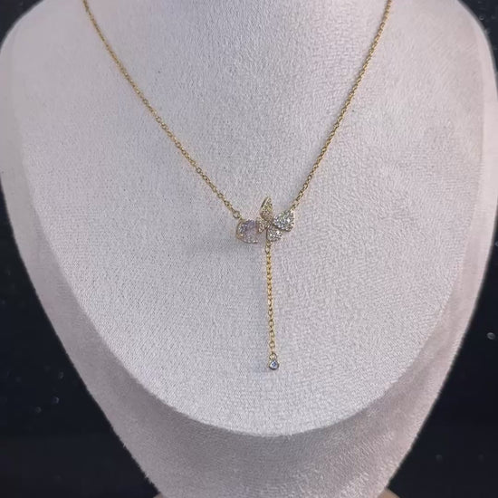 Collar de acero inoxidable con un diseño estilizado que realza la figura de la mariposa y aporta un toque extra de luz en caída. Una pieza fina, moderna y con un brillo delicado que destaca en cualquier look. Resistente, no se oxida y mantiene su color.