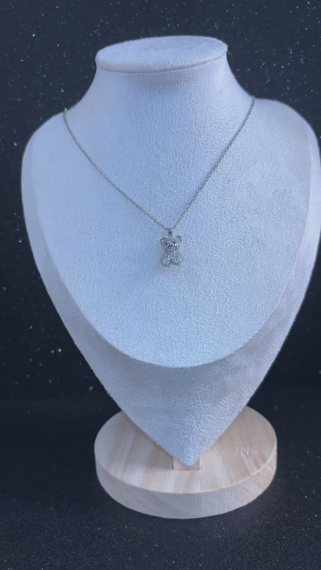 Collar de acero inoxidable plateado con dije de osito brillante en circonitas. Una pieza moderna y elegante, perfecta para el día a día. Resistente, no se oxida y mantiene su brillo
