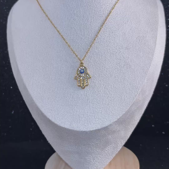 Elegante y lleno de significado, este collar combina lujo y protección. Su colgante dorado con incrustaciones brillantes y ojo turco central aporta un toque sofisticado y espiritual a cualquier look. Ideal para regalar o lucir a diario. 💎