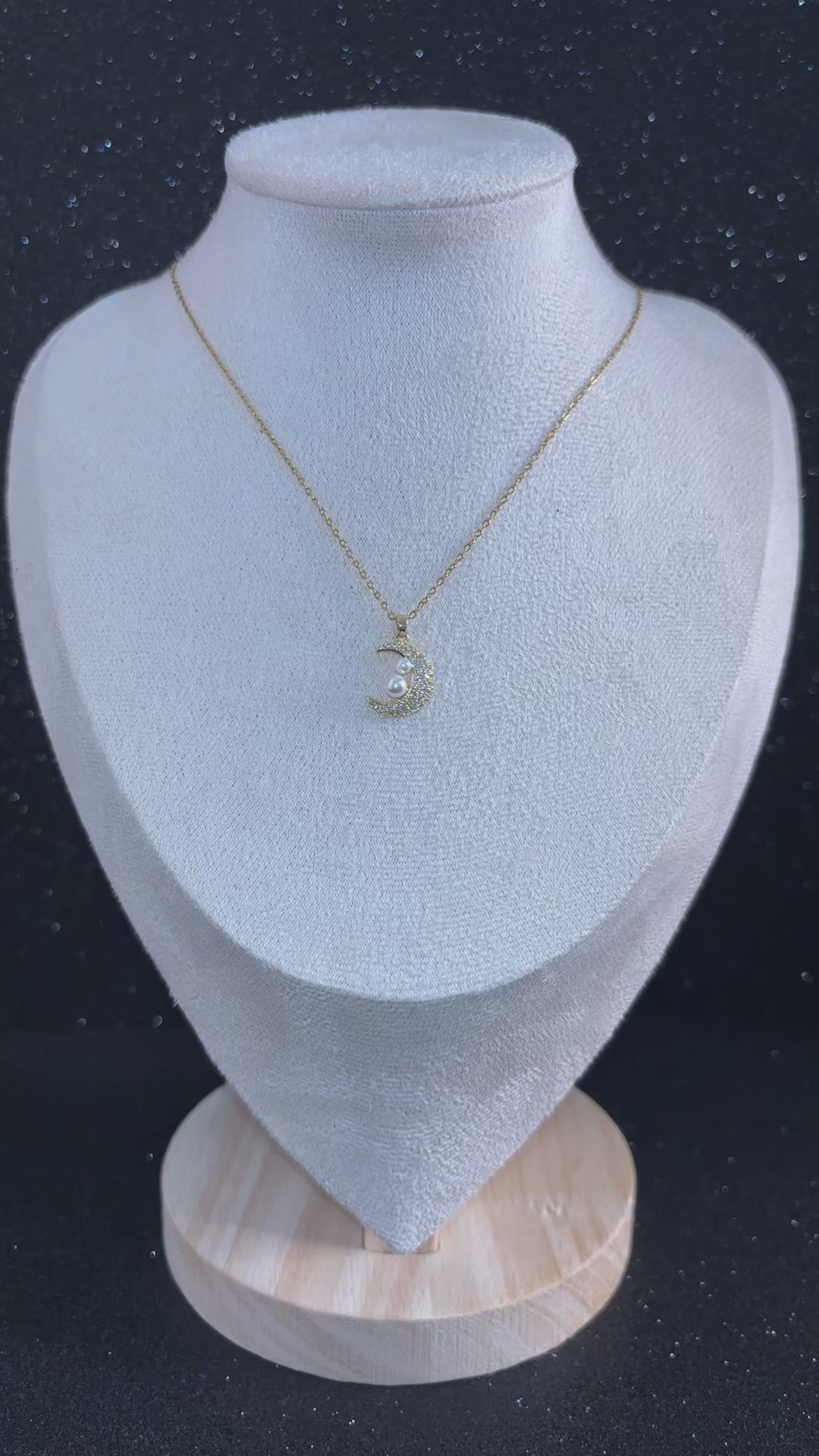 Un diseño que evoca misterio y elegancia celestial. La media luna dorada, adornada con cristales brillantes, abraza delicadamente dos perlas que simbolizan la luz y la pureza. Ideal para quienes buscan un toque de sofisticación y magia nocturna en su estilo. ✨💛